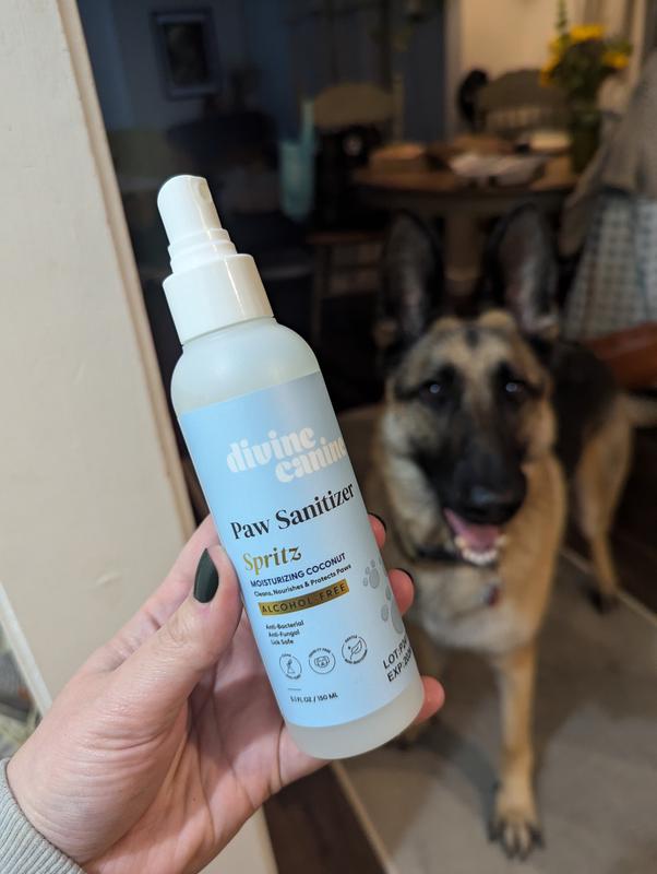 Divine Canine Coconut-Moisturizing Paw Sanitizer Spritz, Anti-Bacterial & Anti-Fungal Alchohol-Free Dog Paw Cleaner, 5.1-fl oz spray