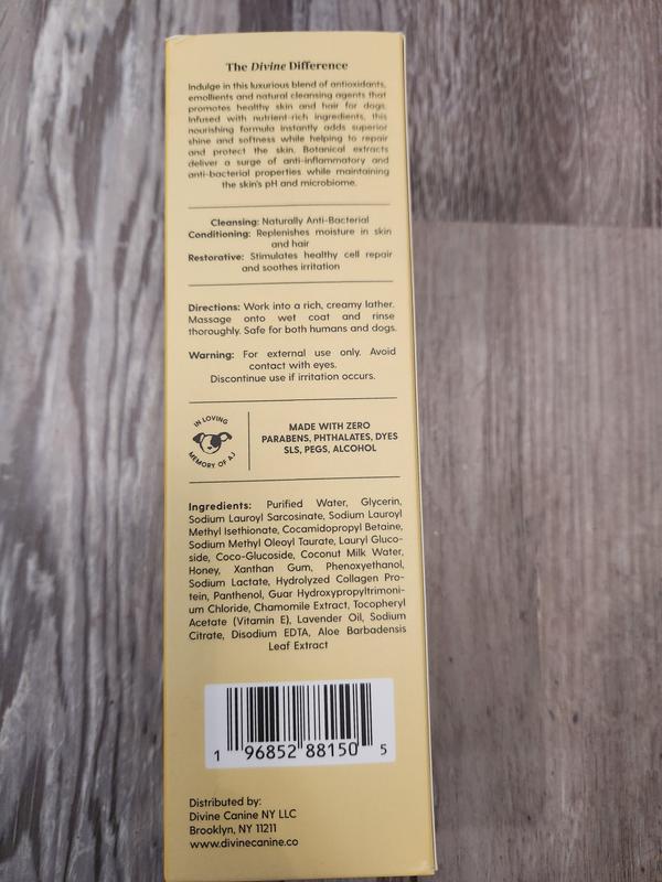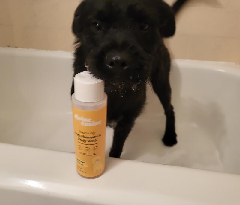 It was bath time for Tucker and Molly. I received the Divine Canine Shampoo to try. One, I like the smell. Not over bearing but pleasant scent. Two, it lathers up nice. Three, rinses great. I’m a stickler on rinsing really good and not leaving any residue. After drying, both Tucker and Molly were soft, beautiful, and show ready. (Just kidding) Noticed no scratching so a real plus for me. I would recommend this product. Thank You