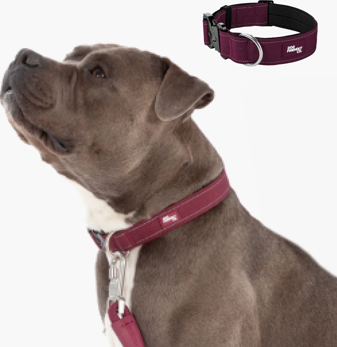 Dog Friendly Co. Comfortable & Secure with Quick Release Clip Buckle Reflective Tactical Dog Collar Black, Premium Burgundy, Large/X-Large