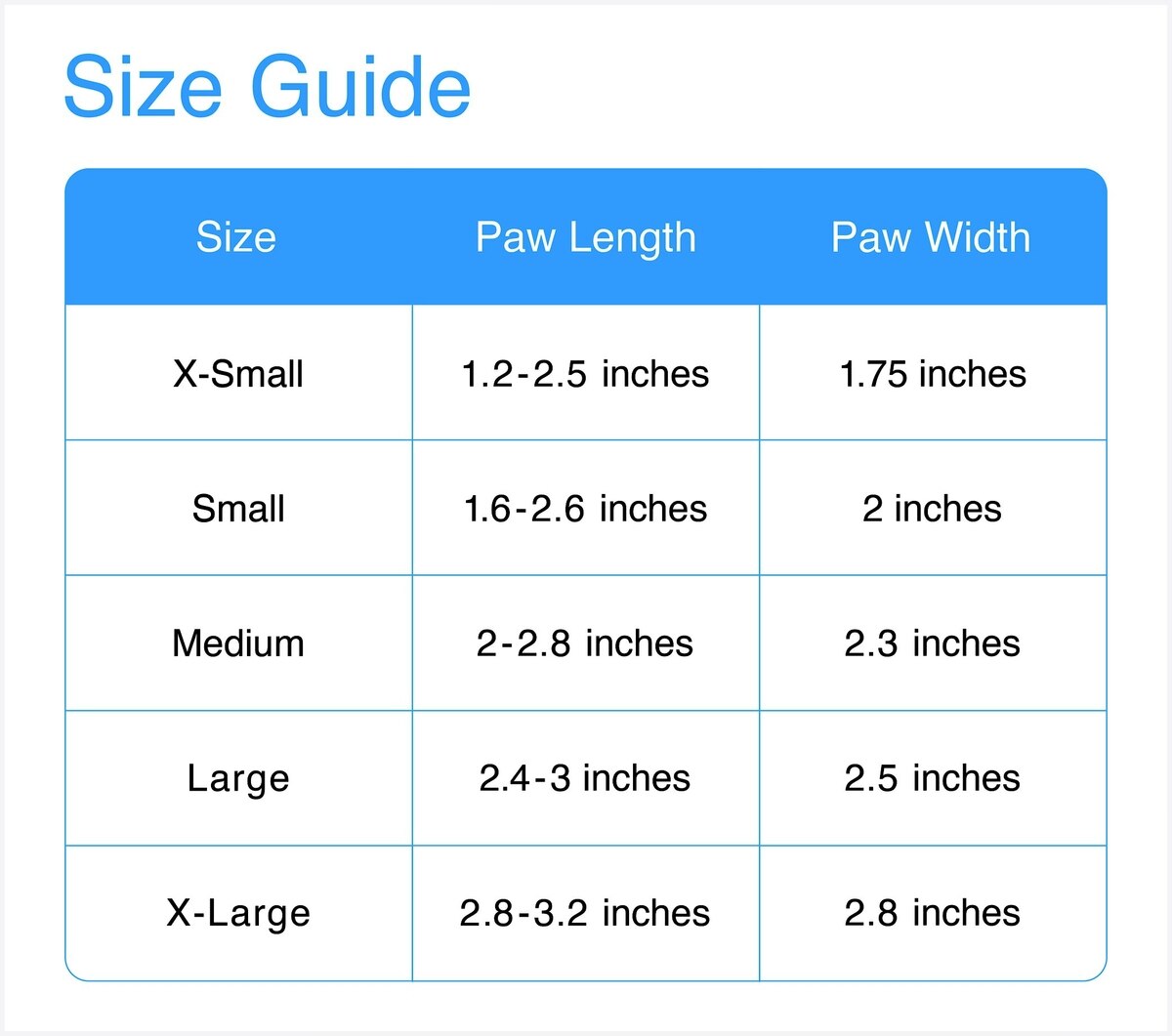 i got these to help my senior with weak hips get traction on the hardwood floor. they're cute, and stay on, but too big and interfere with her proprioception. i measured her feet and they were at the top end of the range for xs, but they're still too big, there's lots of room for her paws to slide around inside the boot which is counterproductive. i'm keeping them bc its better than vetwrap (she pulls it off in minutes), but not thrilled with the fit.