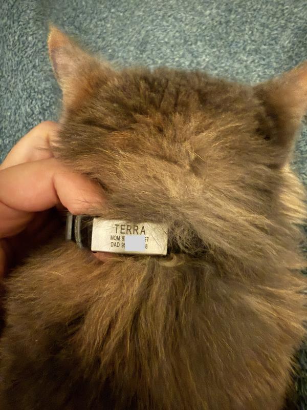 This cat ID tag fits collars measuring ½-inch to ¾-inch wide. This ID tag weighs 3.2 ounces.