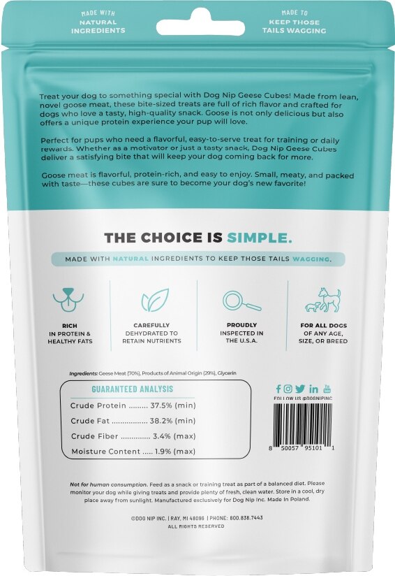 Dog Nip Geese Premium Geese Cubes High Protein Dehydrated Dog Treats, 5.29-oz pouch