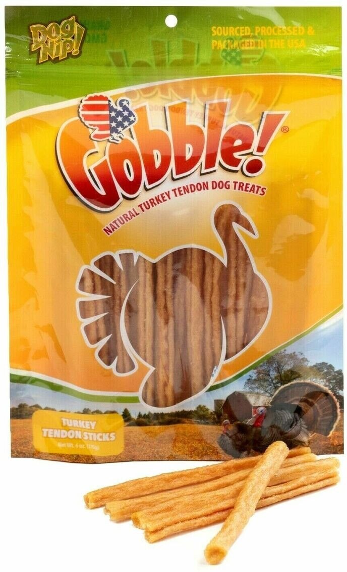 Dog Nip Gobble Turkey Tendon Sticks High Protein Dehydrated Dog Treats, 6-oz pouch