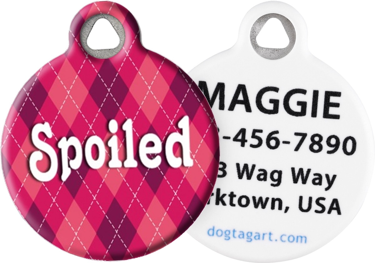 Dog Tag Art Argyle Spoiled Personalized Dog & Cat ID Tag, Small
