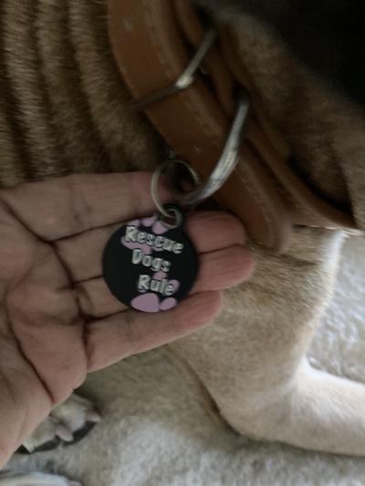 Dog Tag Art Rescue Dogs Rule Pink Personalized Dog ID Tag, Large