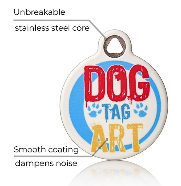 Good size. Allows you to put any info you want on it. Coated so it muffles the license tag jingling.