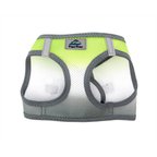 This harness features a simple step in, wrap up and go design. The patented closure slide allows for three inches of size adjustment.