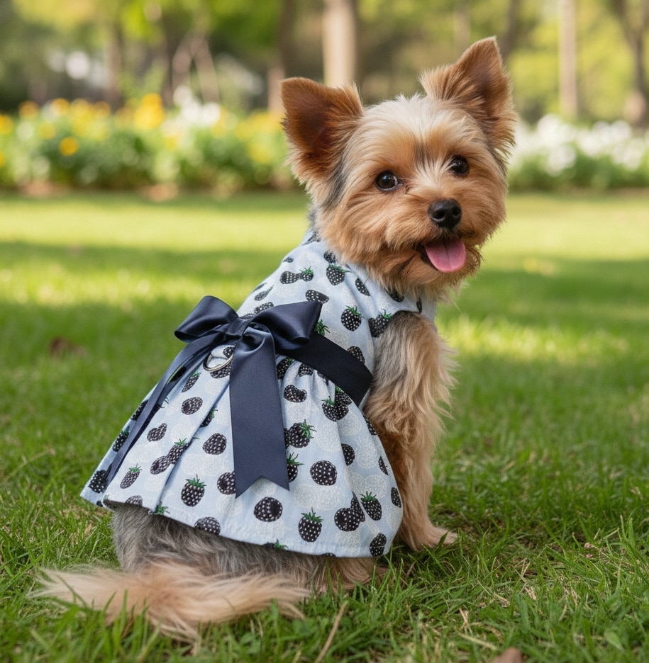 Doggie Design Blackberries Dog Dress with Matching Leash, Blue, Medium