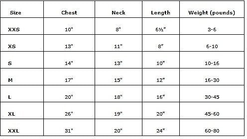 For the best fit, match the below dimensions to your pet's measurements as closely as possible. If your pet falls somewhere between two sizes, we advise ordering the larger of the two.