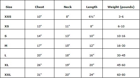 | Size | Chest | Neck | Length | Pet Weight |
