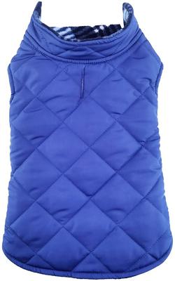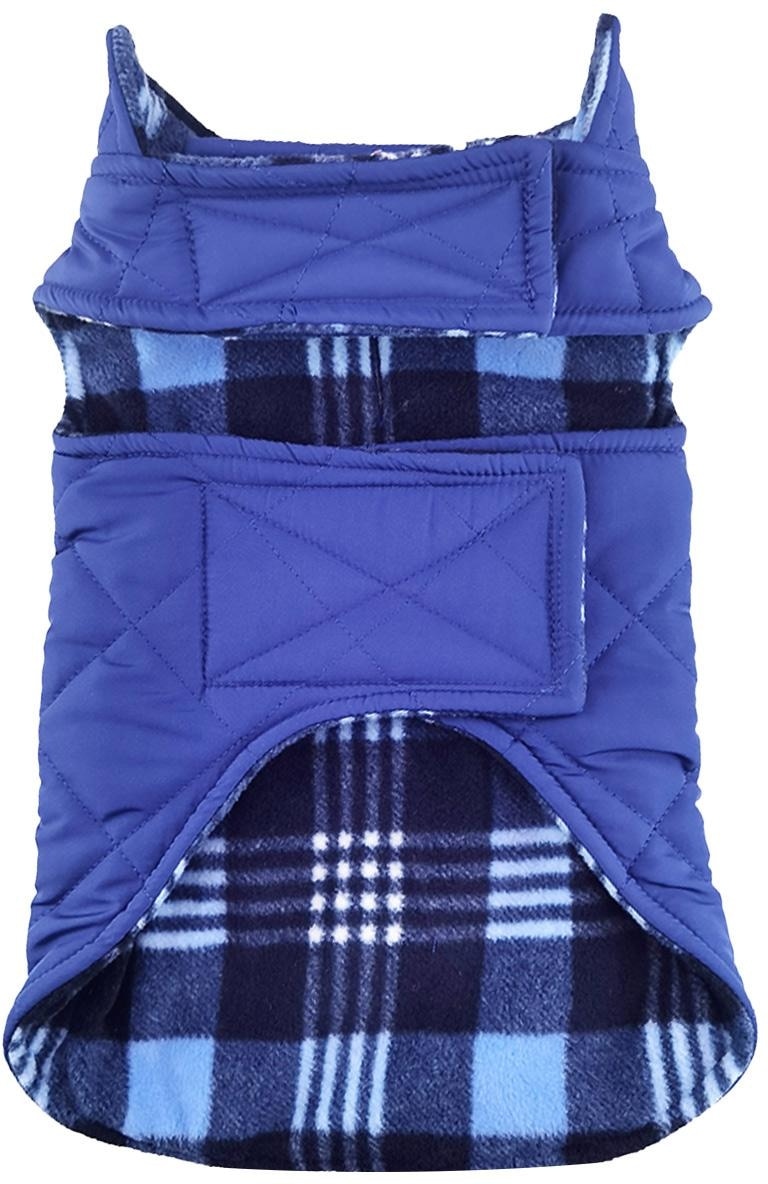 Doggie Design Reversible Fleece Lined Puffer Dog Jacket, Blue Plaid, Medium