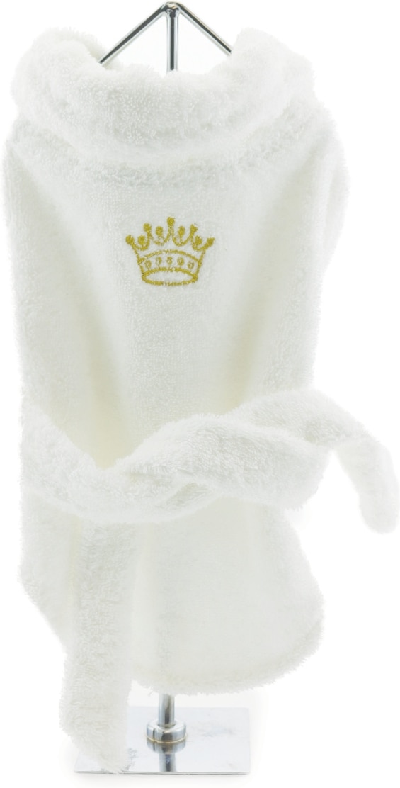 Doggie Design White Gold Crown Cotton Dog Bathrobe, White, X-Large