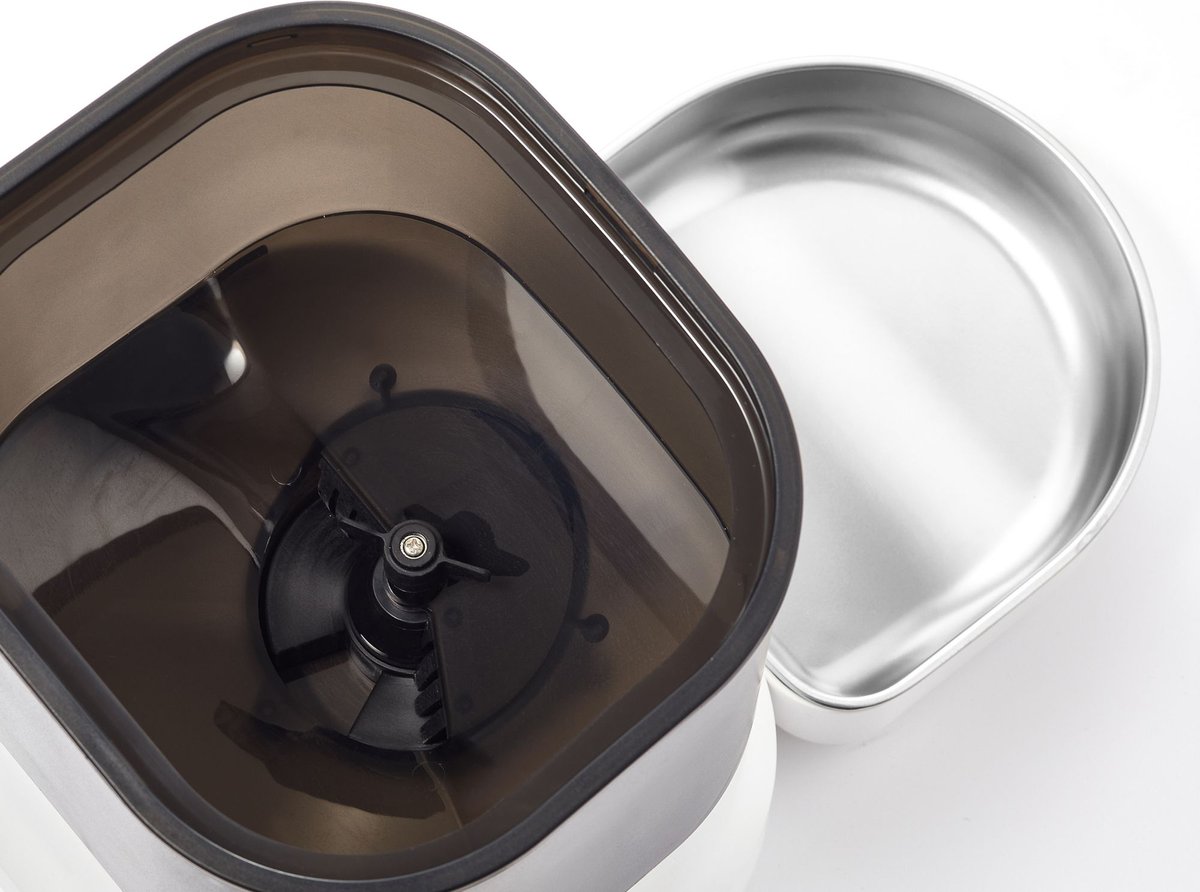 - The stainless steel bowl and the food hopper are removable for easy cleaning.