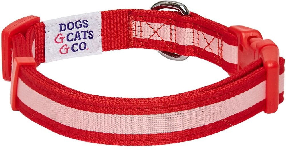Dogs & Cats & Co. Daily Essential with Add-on Accessory Polyester Dog Collar, Red/Pink, Small: 16-in neck, 5/8-in wide