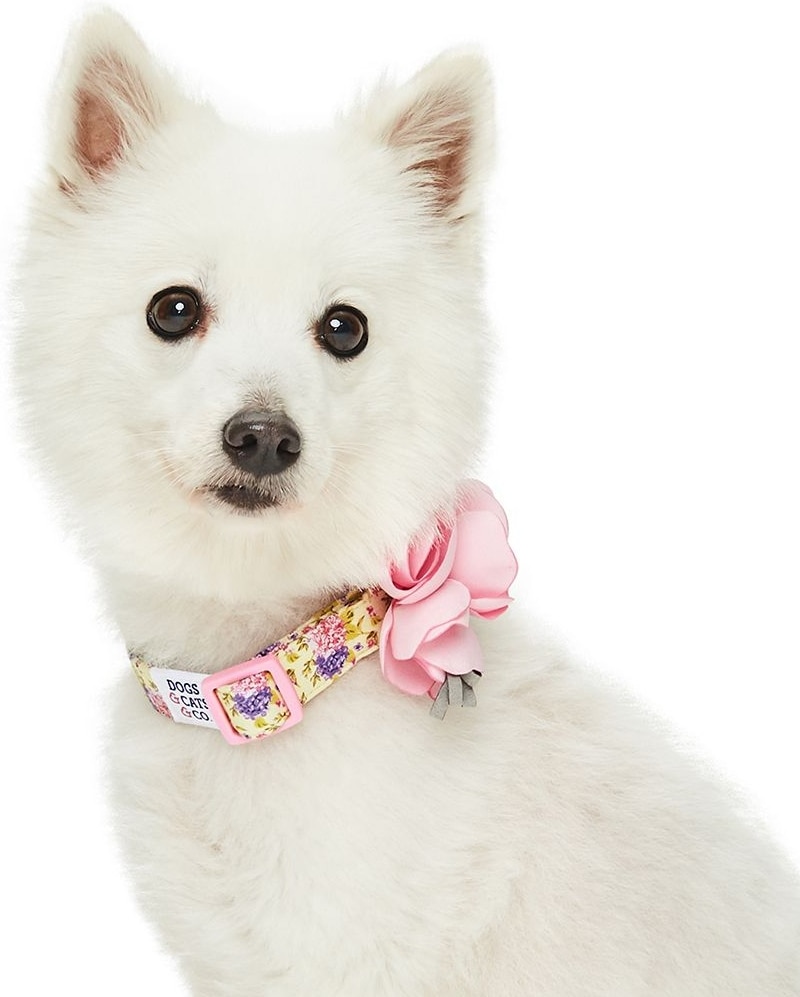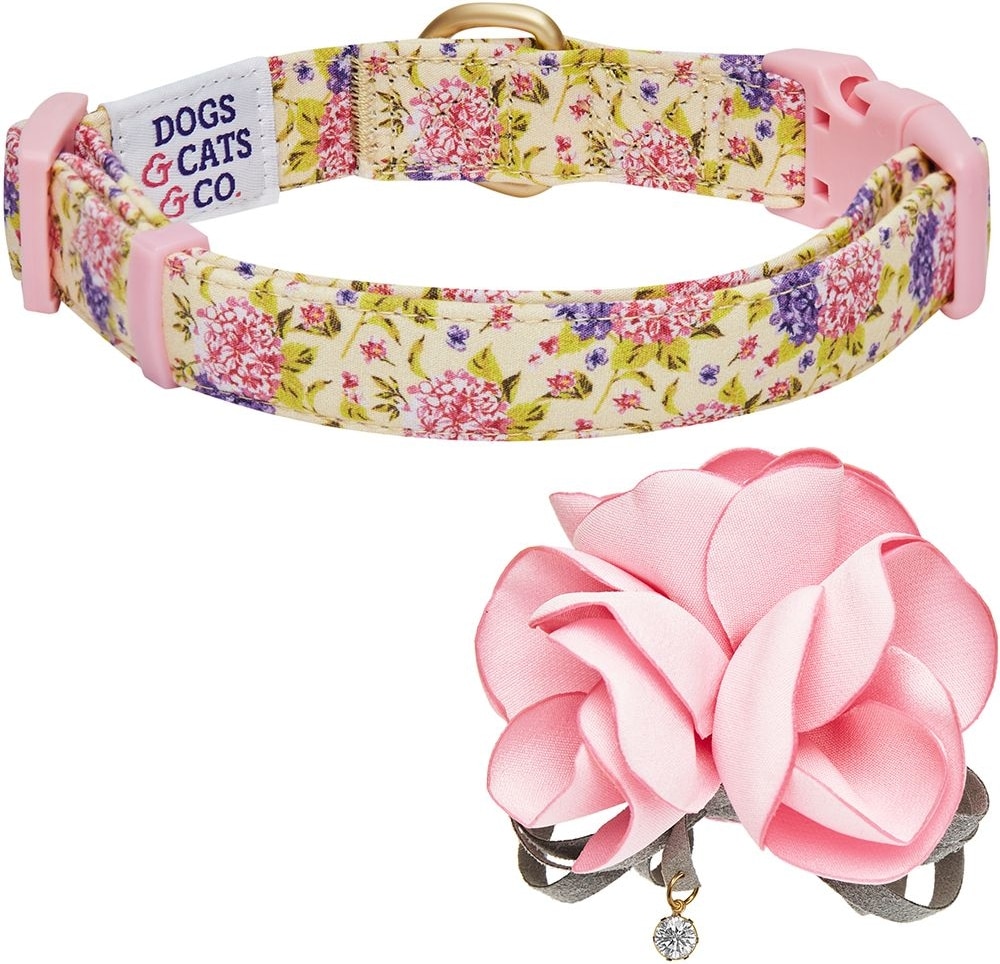 Dogs & Cats & Co. Red Flower AccessoryFloral Design Polyester Dog Collar, Beige & Pink, Small: 16-in neck, 5/8-in wide