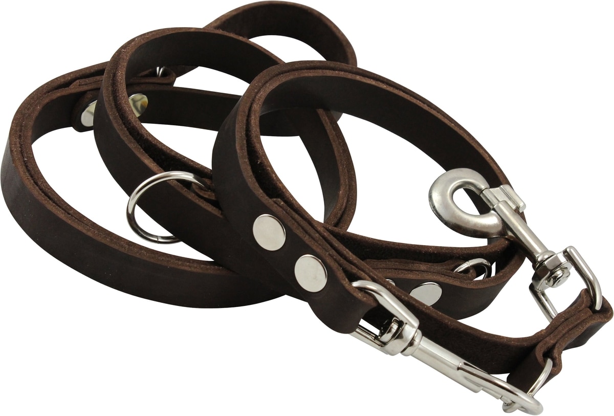 Dogs My Love 6 Way European Multifunctional Leather Dog Leash, Brown, 8-ft long, 3/4-in wide