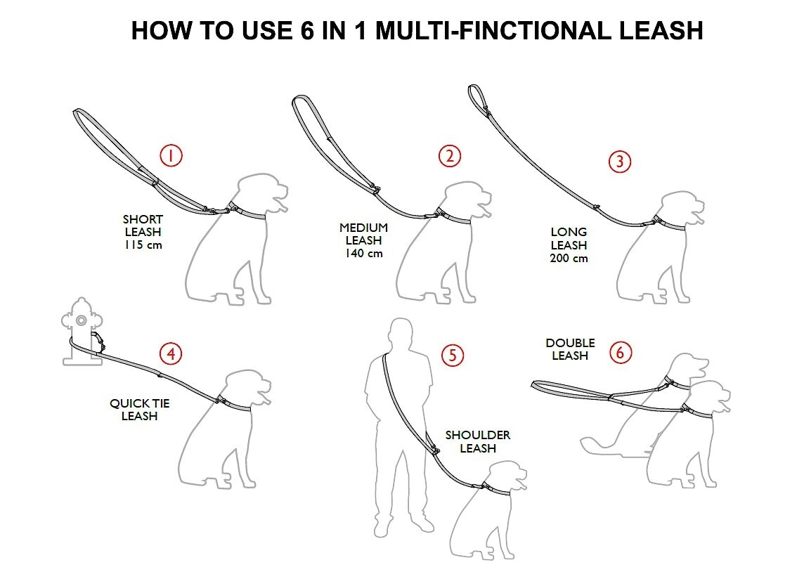 - Works as a multi-length leash, shoulder leash, quick-tie leash, and double leash so you can bring along another pooch.