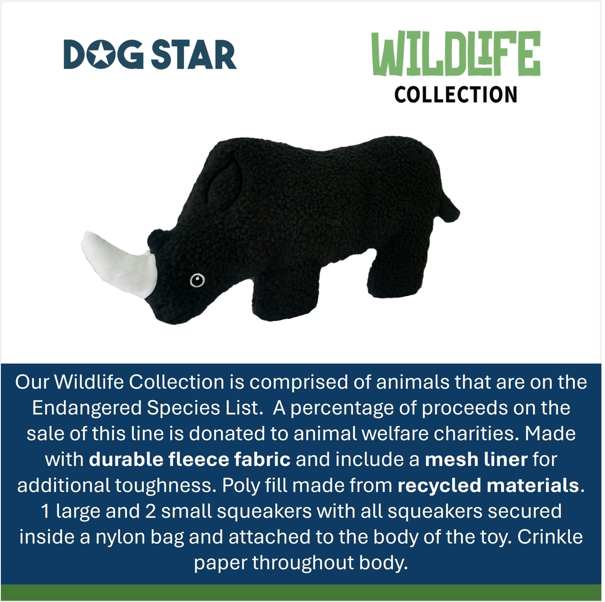 DogStar Wildlife Gertie the Black Rhino Squeaky Dog Plush Toy