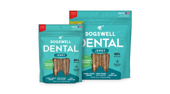 Support Their Dental Health Dogswell Dental dog treats are high in protein from real chicken and have added benefits from intentional ingredients like refreshing spearmint oil and parsley to freshen breath.