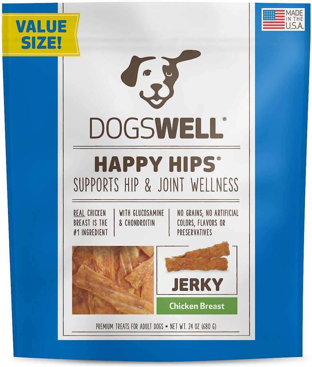 Support Their Mobility Support your dog’s active lifestyle with chewy, meaty treats that taste good and do good. High-quality protein maintains muscle mass and added glucosamine and chondroitin supports your dog’s hip and joint health now and in the future.