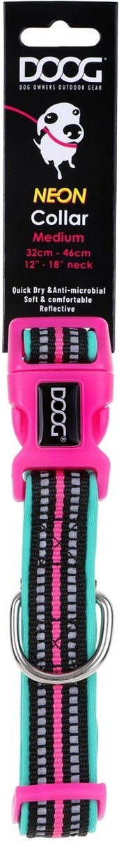 DOOG Neoprene Rin Tin Tin Neon Dog Collar, Pink/Black/Teal, Small: 9 to 13-in neck, 3/4-in wide