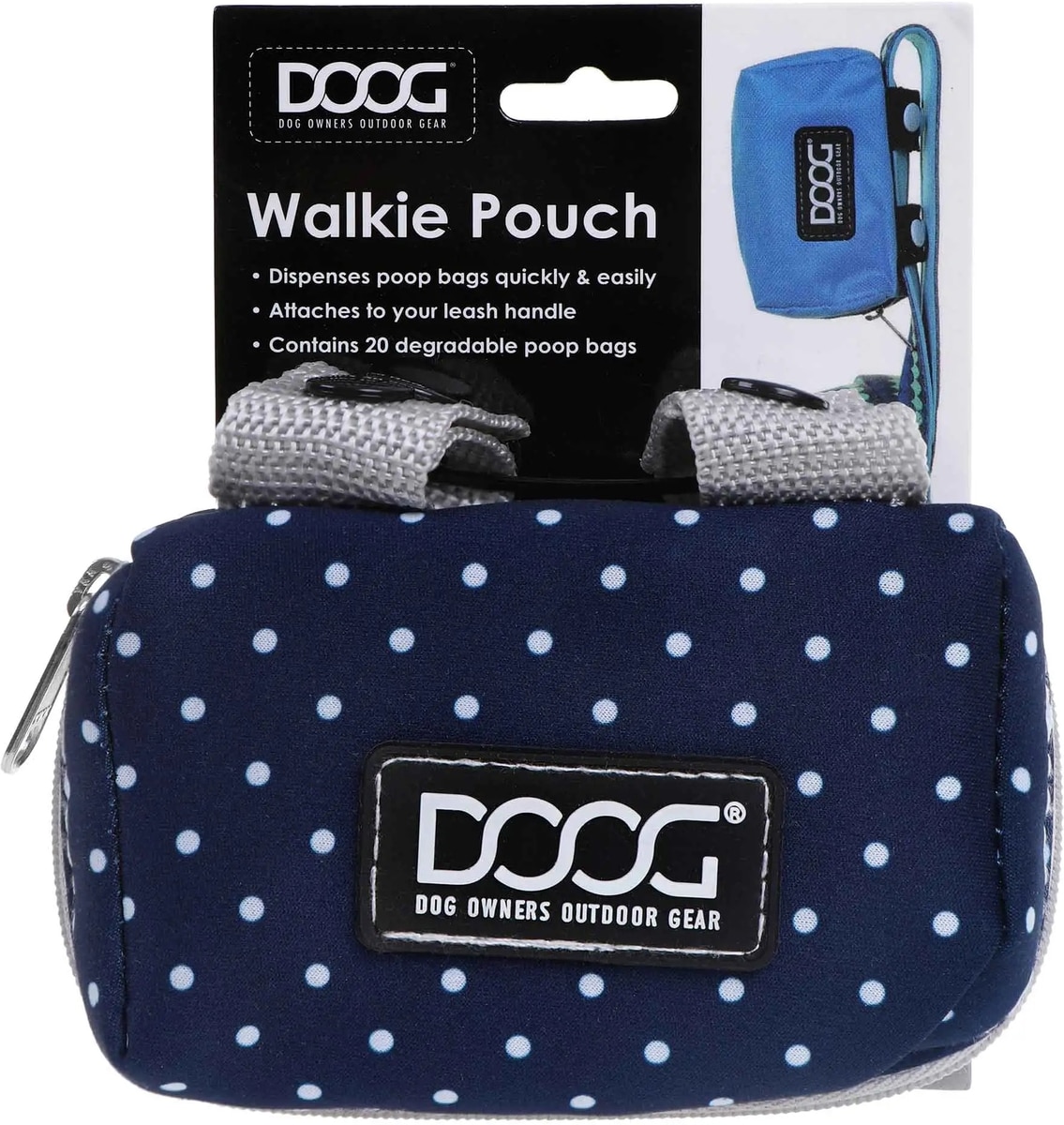 DOOG Walkie Dog Pouch Stella Dog Poop Bag Dispenser, Navy/White Polka Dot