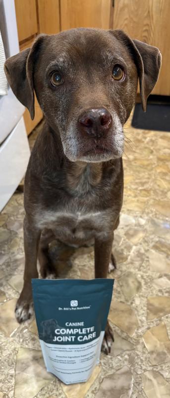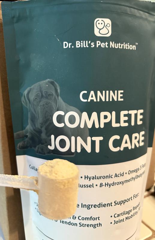 My dog Trig has mast cell tumors that develop all over her body. One grew on her foot, and impacted her leg to the point she was avoiding using it and it was during the pandemic so we could not get to the vet. When we were able to go to the vet again, she removed the tumor and said Trig suffered from muscle atrophy and it was unlikely to be reversed. We found Dr. Bills Canine Complete Joint Care. We give it to Trig every day, adding it to her kibble with other supplements and broth and her leg has gotten back her muscle strength enough that she can walk on all 4 legs comfortably again. We continue to add this to her dinner because she has the beginnings of arthritis and we want her to be comfortable. Consistency is what works and the bag lasts so long because Trig only needs a small amount each day for her size.