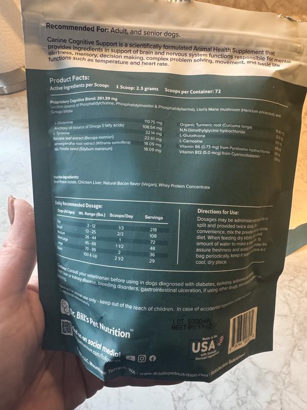 Dr. Bill's Pet Nutrition Canine Cognitive Support Brain & Nervous System Senior Dog Supplement Powder, 180-gm pouch