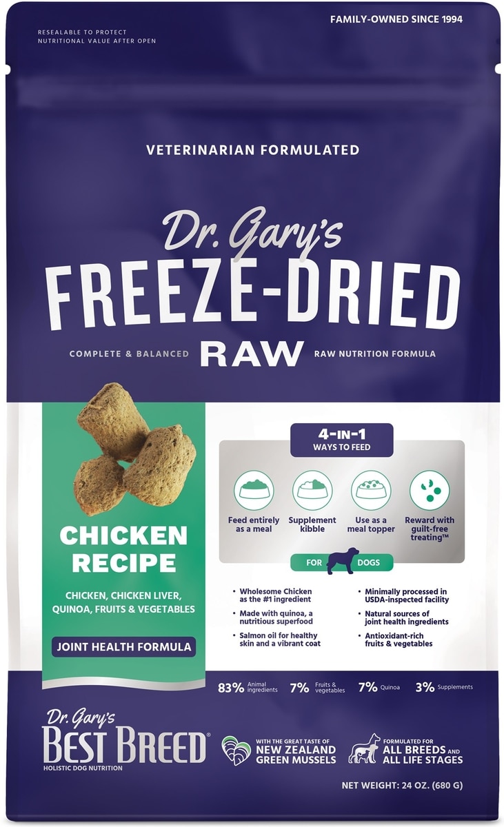 - Dr. Gary's Best Breed Beef Recipe High-Protein Adult Raw Freeze-Dried Dog Food, 24-oz bagRated 4.2 out of 5 stars4.214Reviews$60.99 Chewy Price$60.99$57.94 Autoship Price$57.94Promo, New Customers Only: Spend $49+, Get $20 eGift Card +1 deal