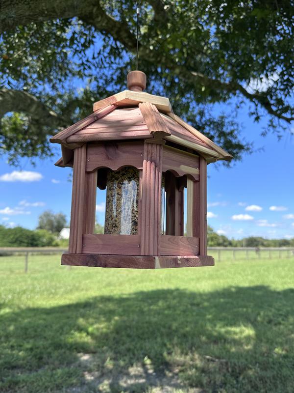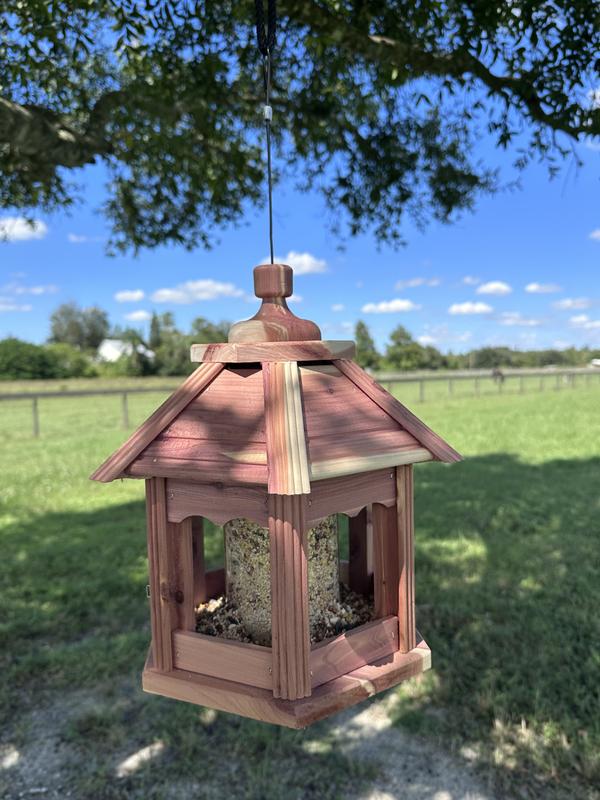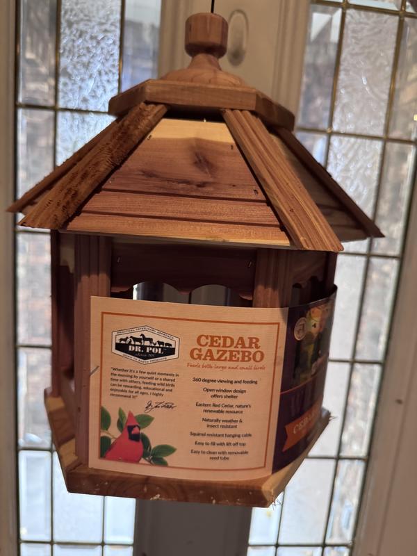 The Dr. Pol Cedar Bird Feeder is an excellent product. I had stopped feeding bird because of spillage and inferior products. Thankfully that changed with this feeder. This Gazebo feeder is exceptionally made, attractive, and the bird love it. The birds are protected from the elements and the seed stays in place. I'm thrilled to be back to feeding birds because of this feeder.