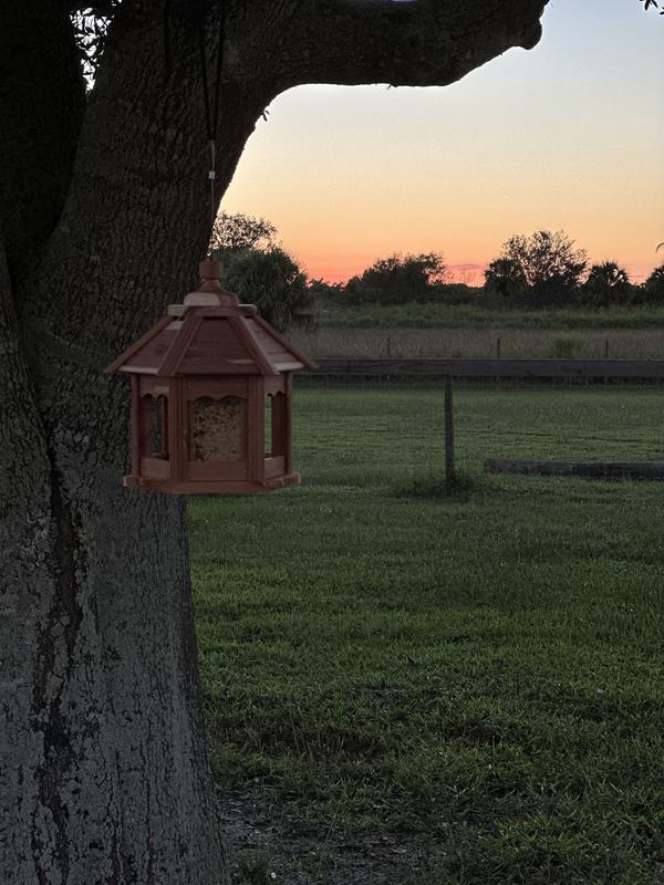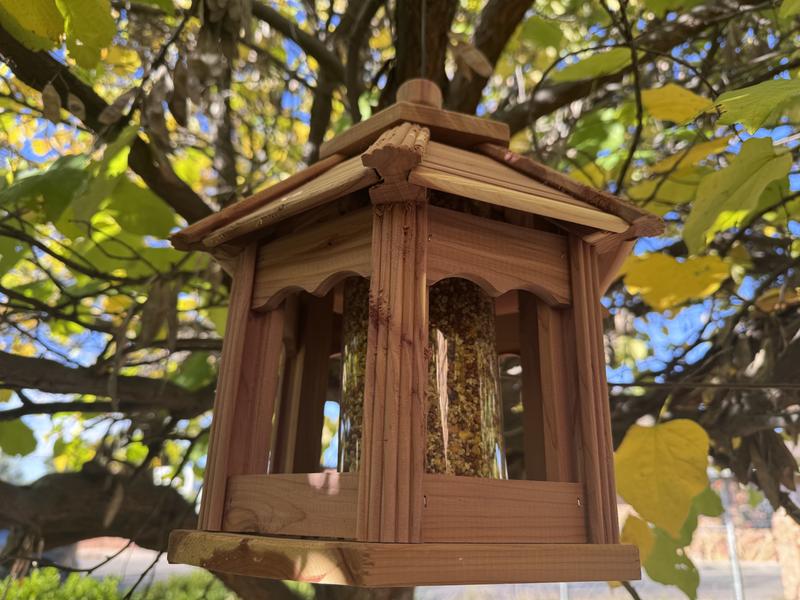 I was sent the Dr. Pol Cedar Gazebo Bird Feeder to test out, and I'm so happy with it! It worked perfectly right out of the box, and the design is absolutely adorable. The cedar wood gives it a warm, rustic look, and the little gazebo shape adds such a cute touch to my yard. It's sturdy, easy to fill, and the birds took to it right away. I've already seen several visiting throughout the day, and it's been such a joy to watch. The quality feels great, and it looks even nicer in person than I expected. Overall, I'm really impressed and would definitely recommend this teeder to anyone looking to add a charming, functional piece to their bird-feeding setup!