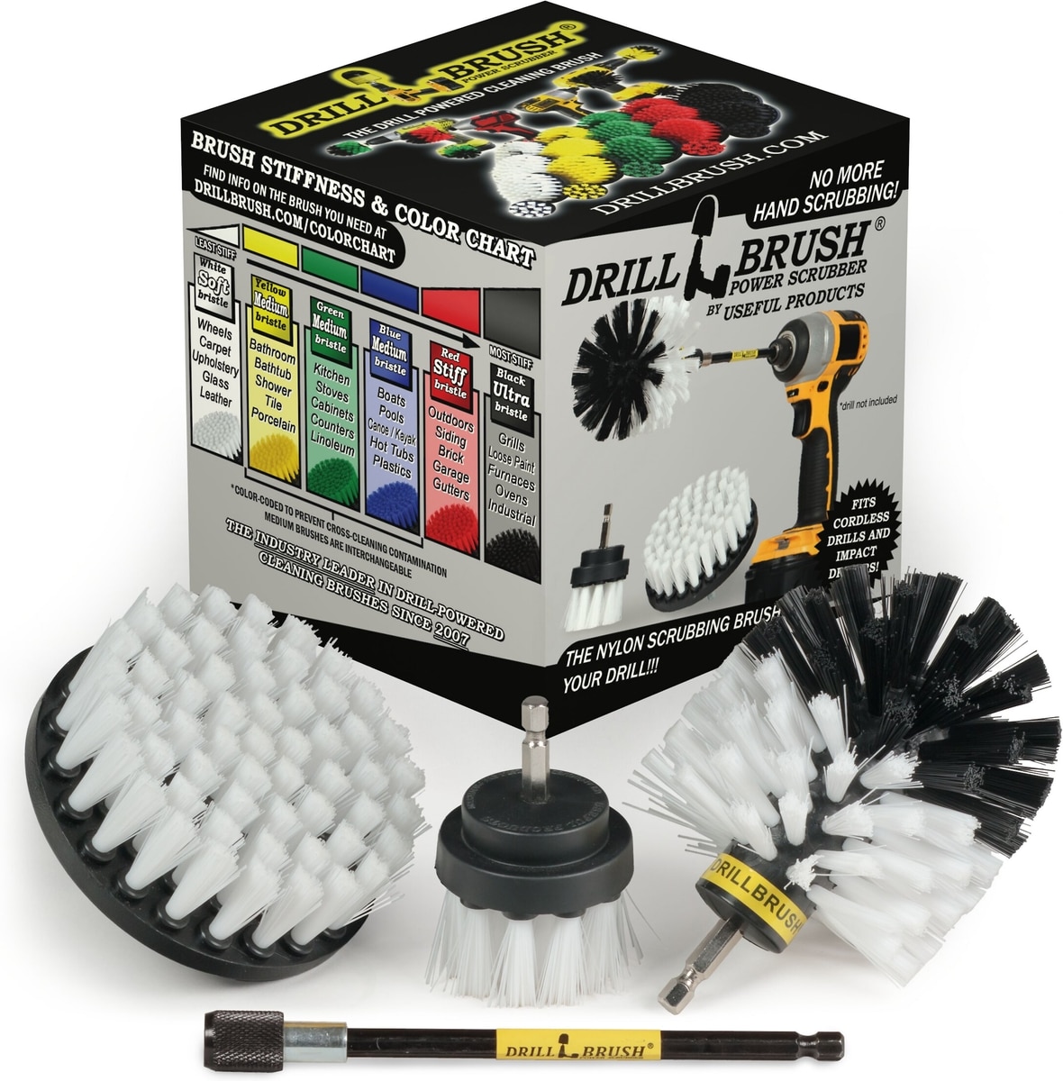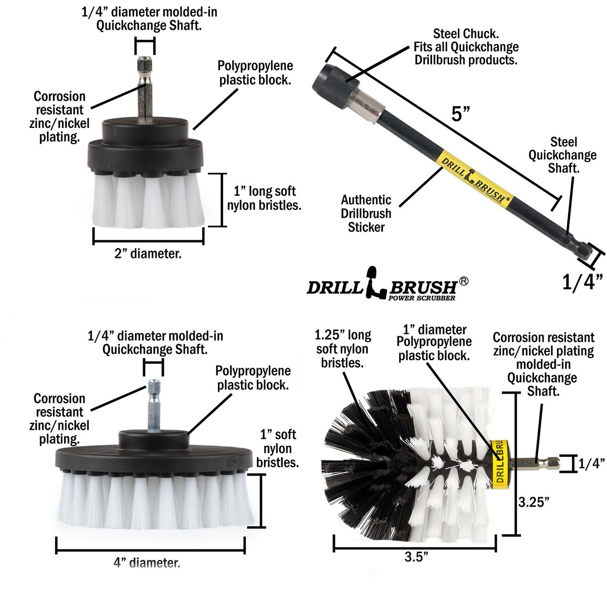 Drillbrush Power Scrubber 3-Piece Pet Hair Remover Brush Kit & Long Reach Extension, Soft Bristle Drill Brush