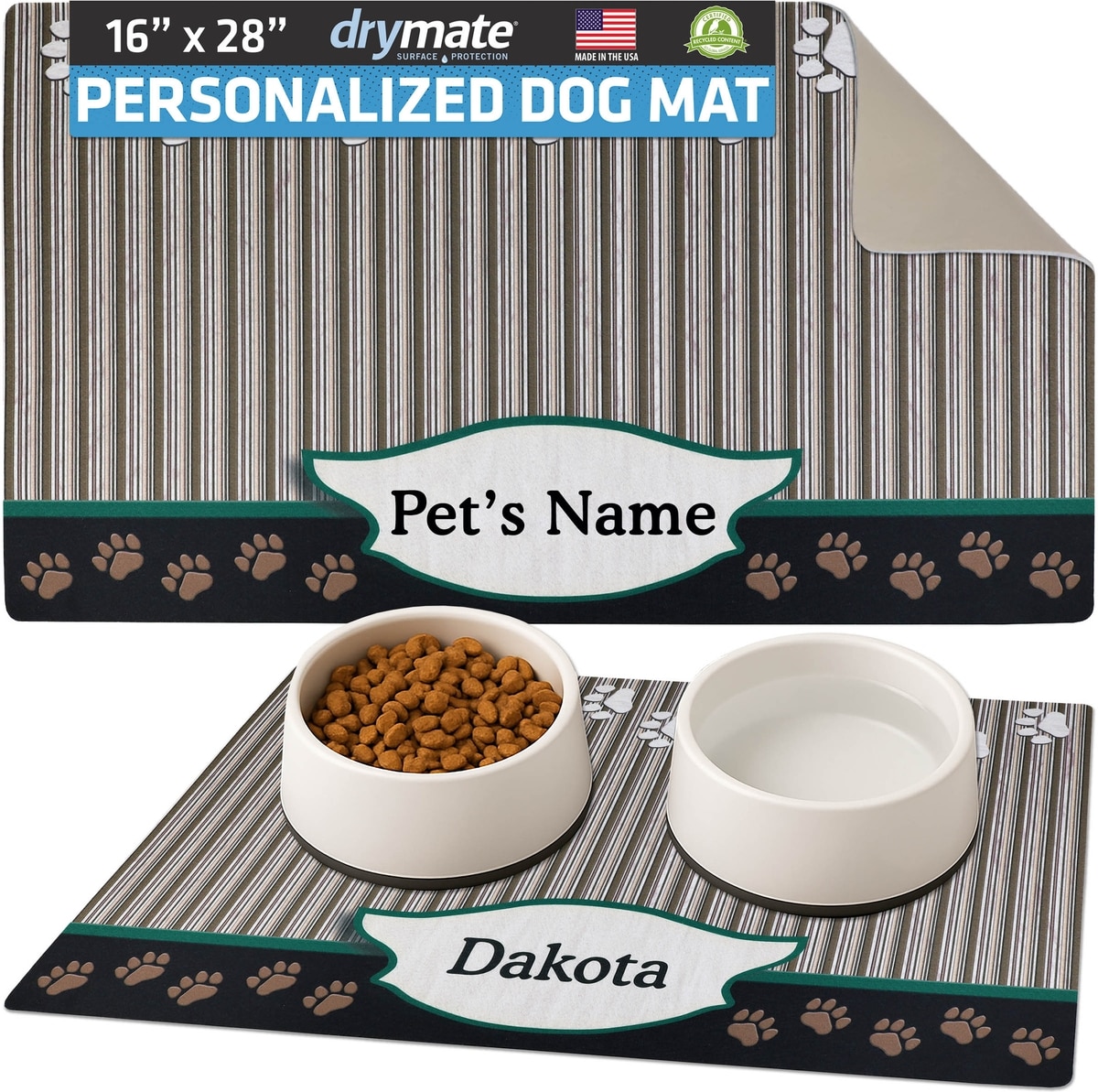 Drymate Green Tan Paw Personalized Dog & Cat Placemat, Large