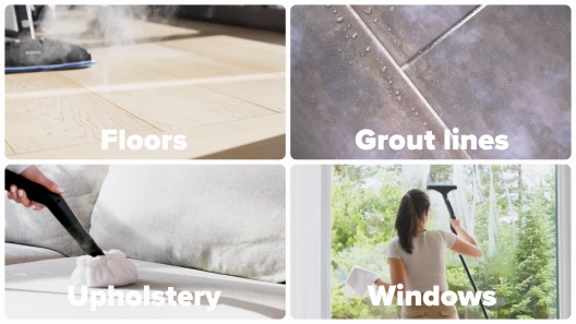 I have used this to clean kitchen and bathroom floor and it is really cool how well it cleans. I also used it to clean stove pans and WOW!!! This thing is super fun!! It takes some scrubbing but got stove pans that i was going to throw away silver again instead of black! Could of gotten them cleaner but was so impressed i moved on to cleaning cabinets! It just shines them up and removes any gunk! This comes with so many cool accessories pretty much for anything you want to use it for! It has three mop pads that easily stick right on and small brushes you can use for areas like between bath tub and floor to get dirt out of creases. I mean with all the accessories and ease of use the possibilities are endless and it is-fun to use! It rolls so easy to move around when moping etc., the cord folds around inside the bottom for storage and i wrap the hose around too and tuck under the handle.i cleaned the windows in the screen doors and the door dirt around the knobs. I mean it is like i just look around for areas i can try it on it is really a toy and makes cleaning fun! You just want to watch how well it cleans and watch the dirt and grime disappear. Can also clean pan bottoms and gunk that never seems to come off when washing. I never knew about steamers before this and mow i cannot believe i haven’t always had one!