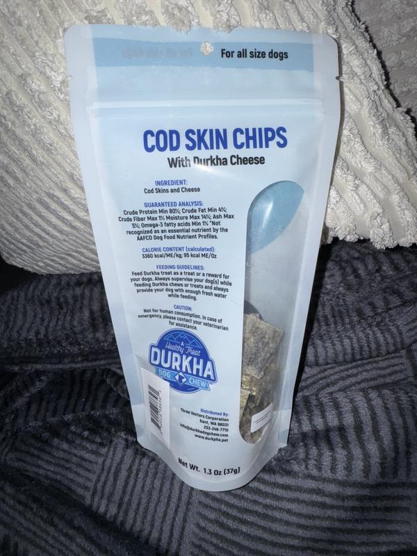 Durkha Cod Skin Chips Dehydrated Dog Treats, 1.13-oz bag