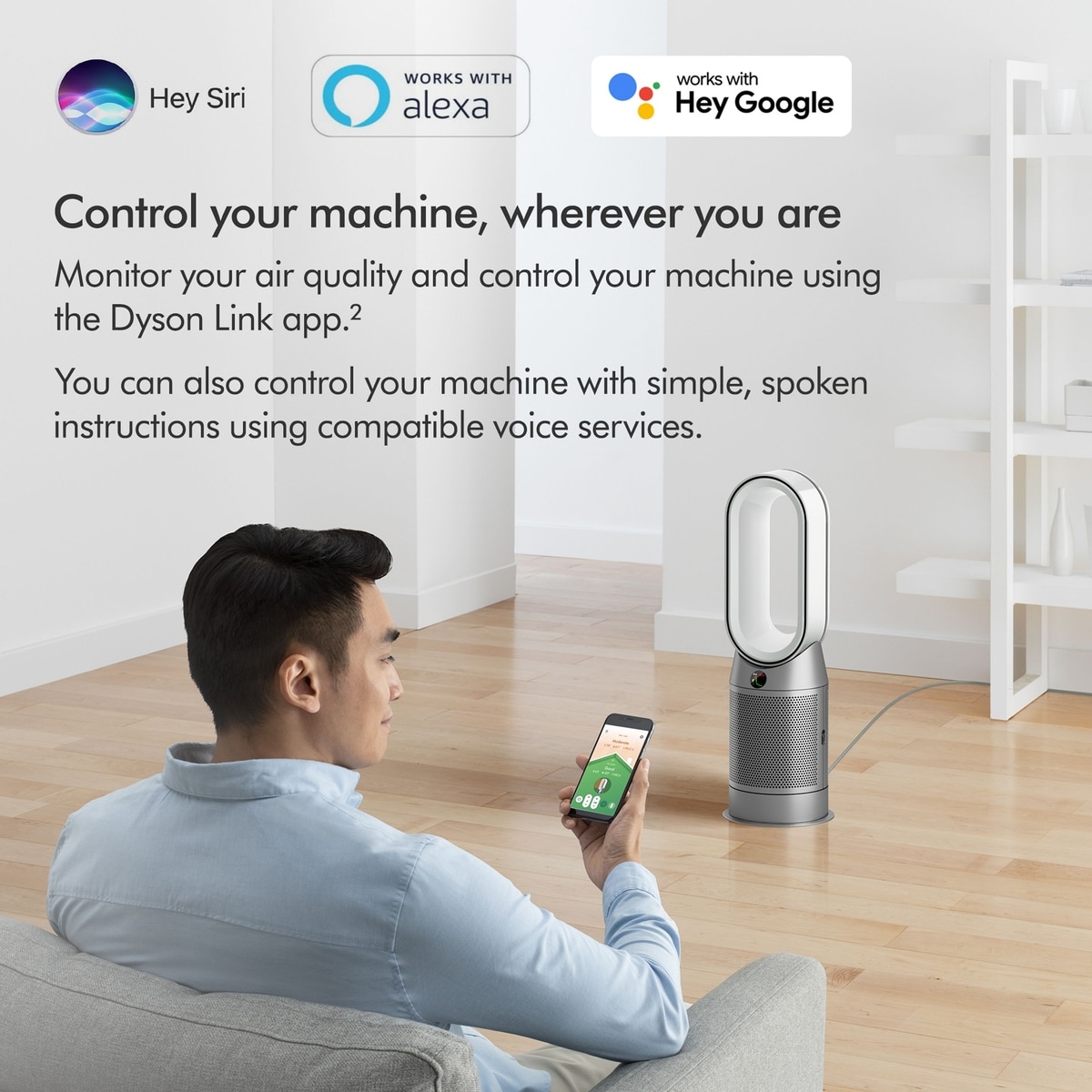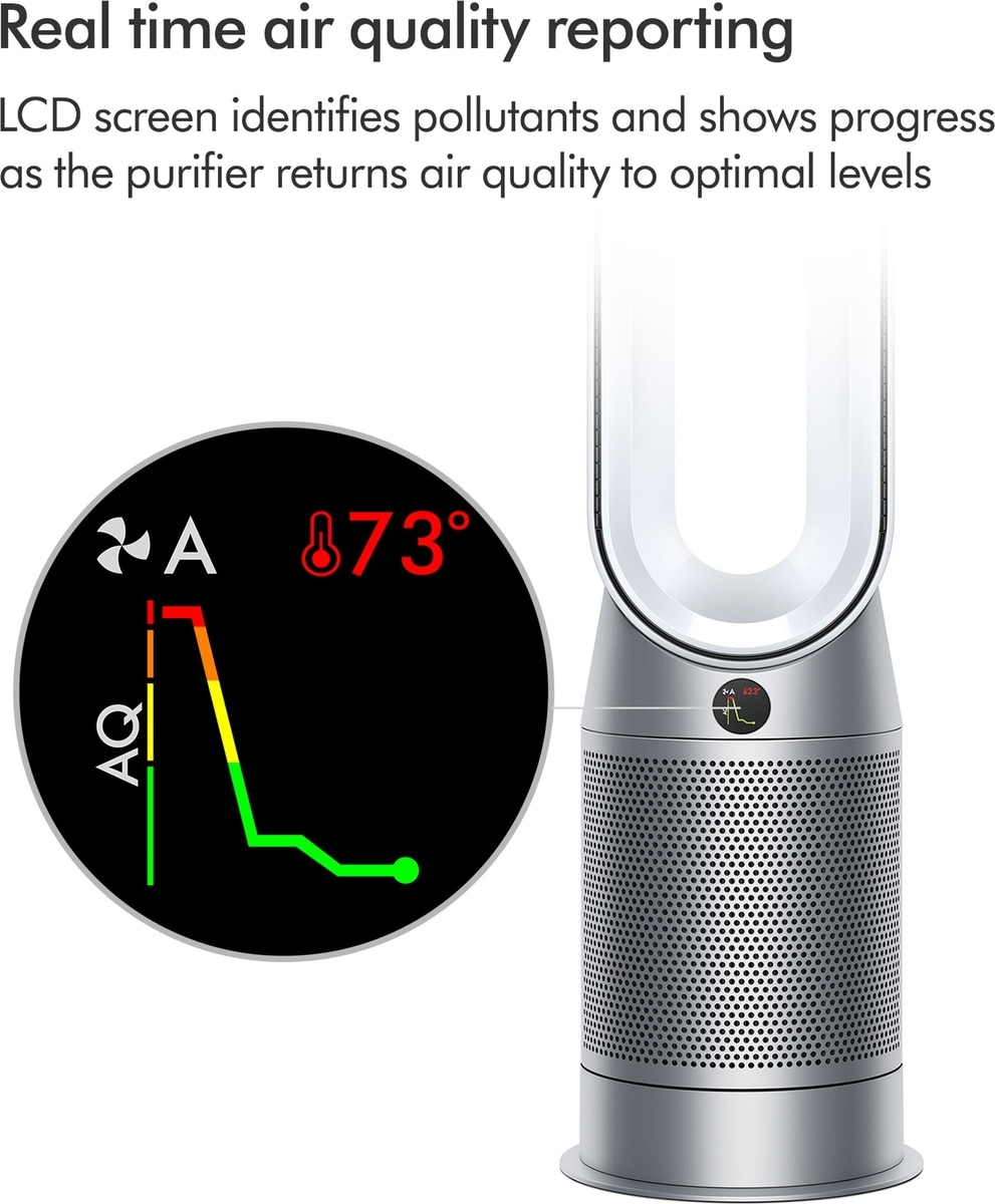 • Receive real-time pollution reporting on the LCD screen or via the MyDyson app.