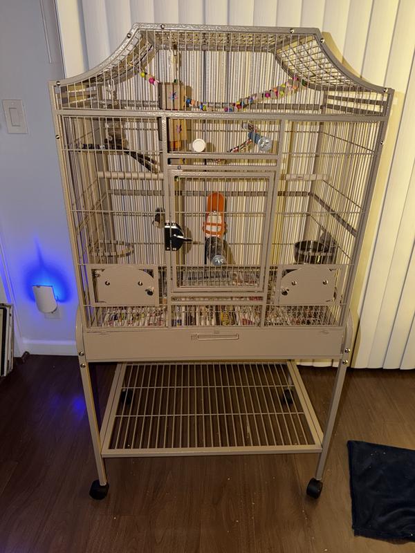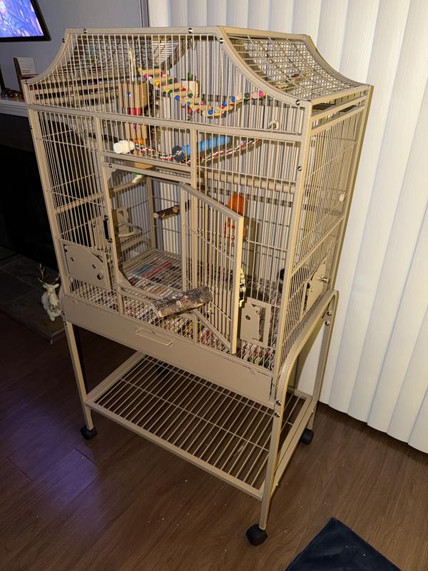 Love this cage! Sturdy, great color and was easy to put together. It was perfect for my 2 cockatiels. They love it too! Quick delivery!