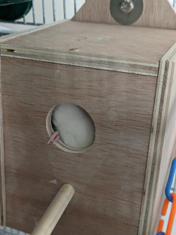 DO NOT make the mistake I made. DO NOT purchase for Parakeets! The hole is tooooo small of an opening for a parakeet and when I went back to review my order the description is for a Finch! I have had this over a month and today I decided to coast Angel inside as I never noticed her or Charlie going inside of the hole opening but both of them did go inside of it when I opened the top of the box, but Angel couldn't get out or go through the hole opening. I want to make sure no one else makes this mistake. However, It is made really well. No missing parts.