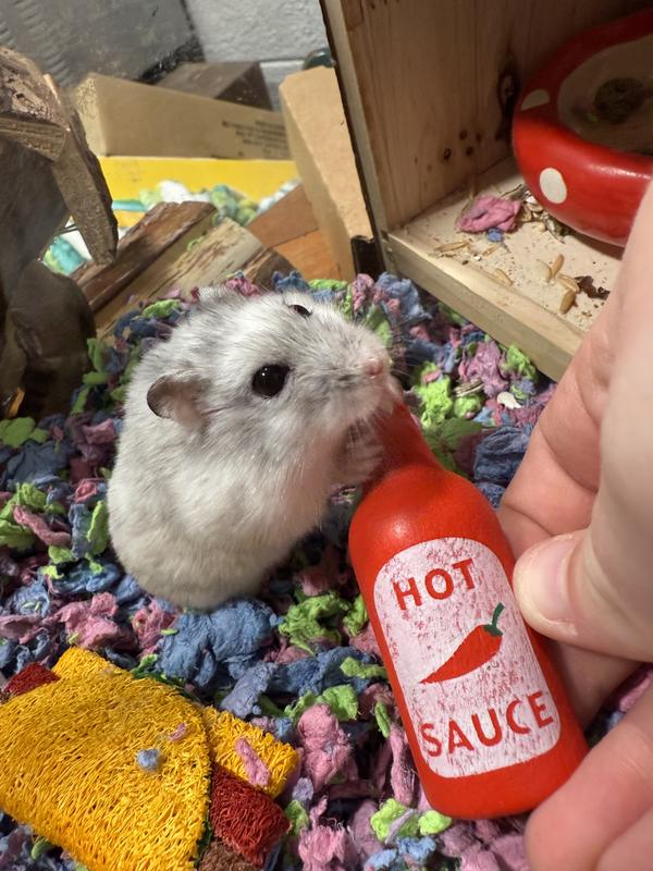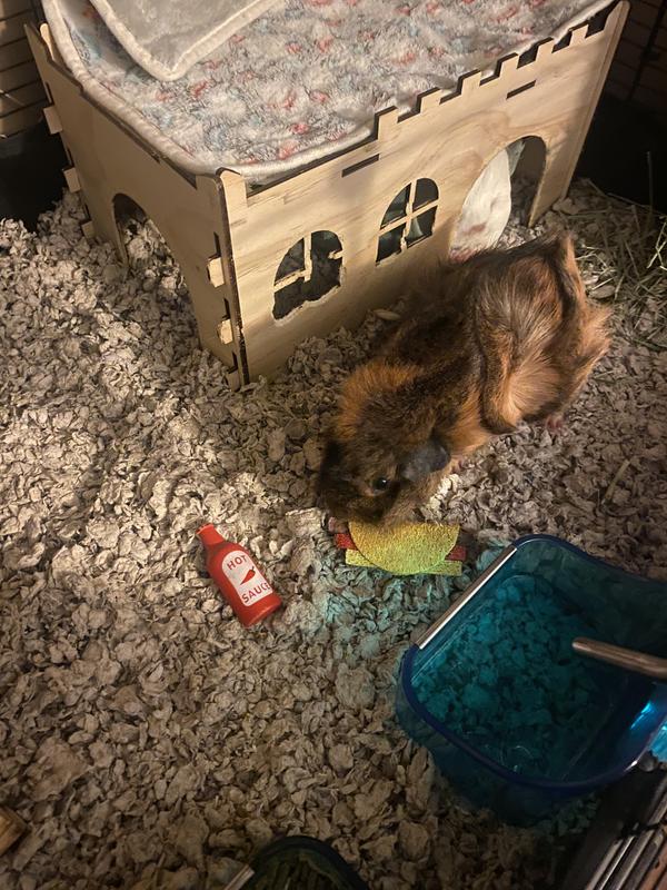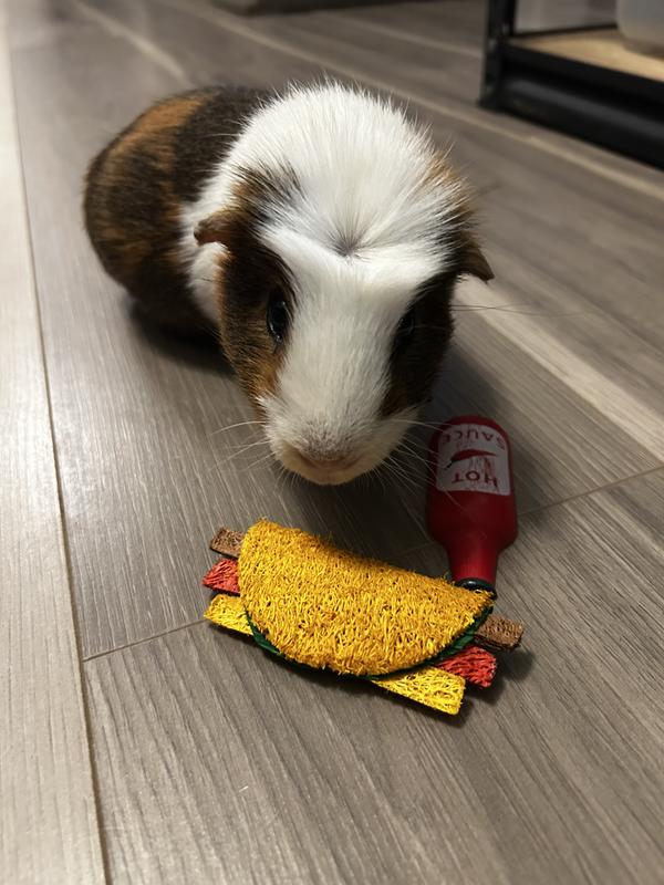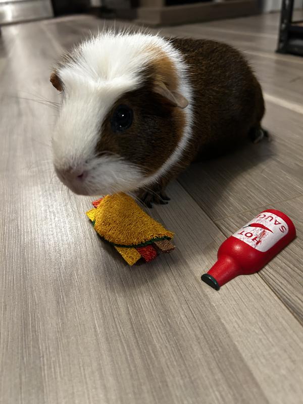 These are really cute little chews. They’re exactly what you’d expect them to be. My guinea pigs didn’t like the little wooden hot sauce, but they eventually chewed the taco.