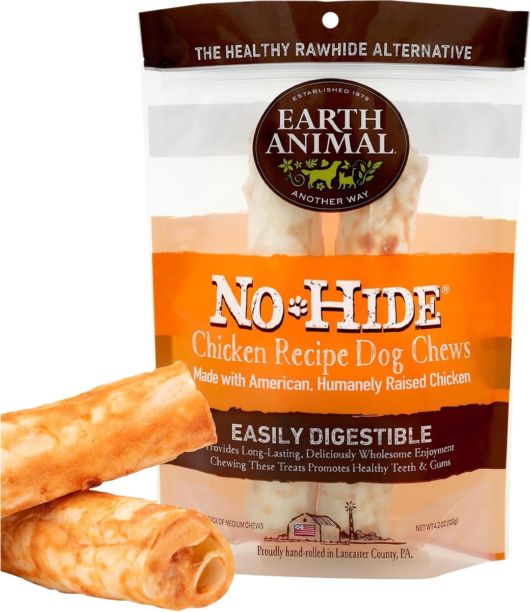 - Earth Animal No-Hide Medium Rolls Long Lasting Natural Rawhide Alternative Pork Recipe Chew Dog Treats, 2 count$20.99 Chewy Price$19.94 Autoship PricePromo, New Customers Only: Spend $49+, Get $20 eGift Card