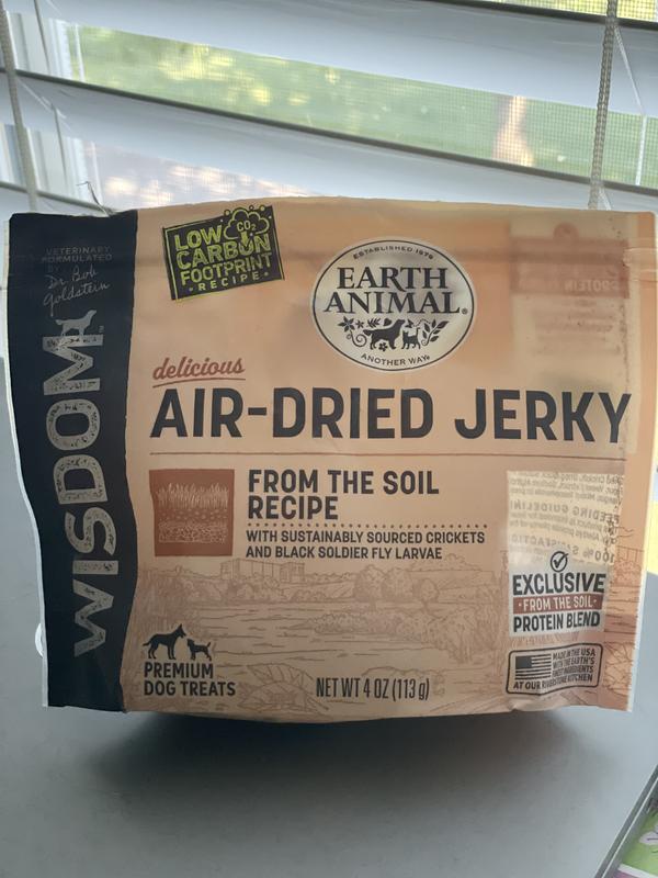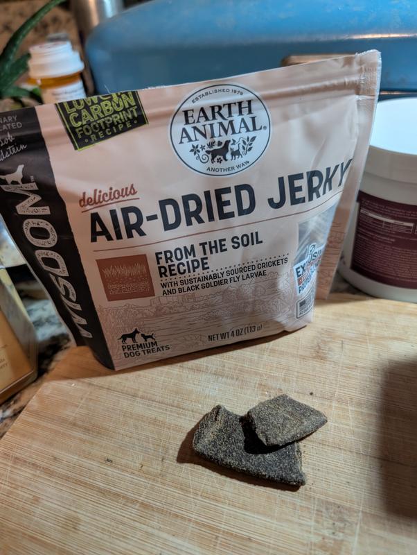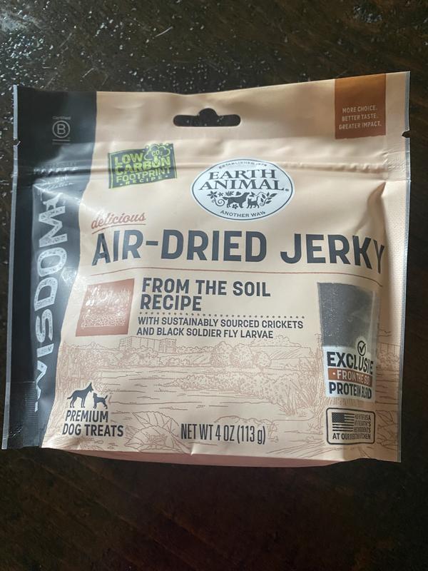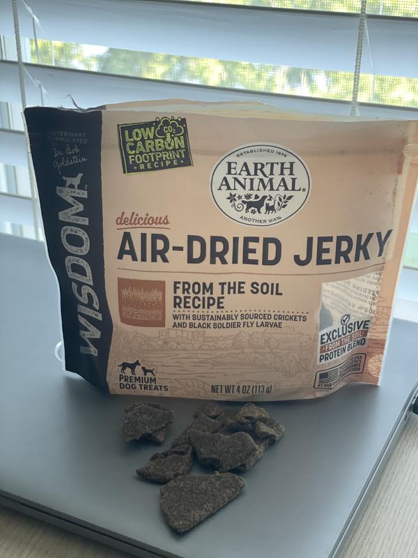 Earth Animal Wisdom Air-Dried From the Soil Recipe Premium Natural Insect-Based Jerky Strips Dog Treats, 4-oz bag