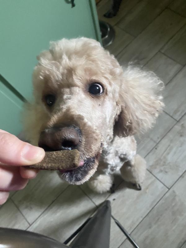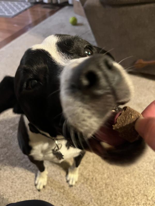 I was a bit skeptical about trying this product — crickets and black soldier fly larvae? Hmm, not exactly appetizing-sounding ingredients. But I decided to give it a go. I have two dogs: Millie, a 12-year-old pit bull terrier/border collie mix, and Stella, a 1-year-old dachshund/Aussie mix. I offered Millie a treat first. She sniffed it, shook her head, gave a little sneeze, and walked off — totally uninterested. No treat for her. Stella, on the other hand, couldn't get enough. Then again, Stella eats literally everything she finds. The treats smell kind of like a freshly tilled garden — earthy, not unpleasant, just... different. Bottom line: If you’ve got a picky eater like Millie, these probably aren’t going to be a hit. But if your pup is a food vacuum like Stella, go for it — they’ll love it.