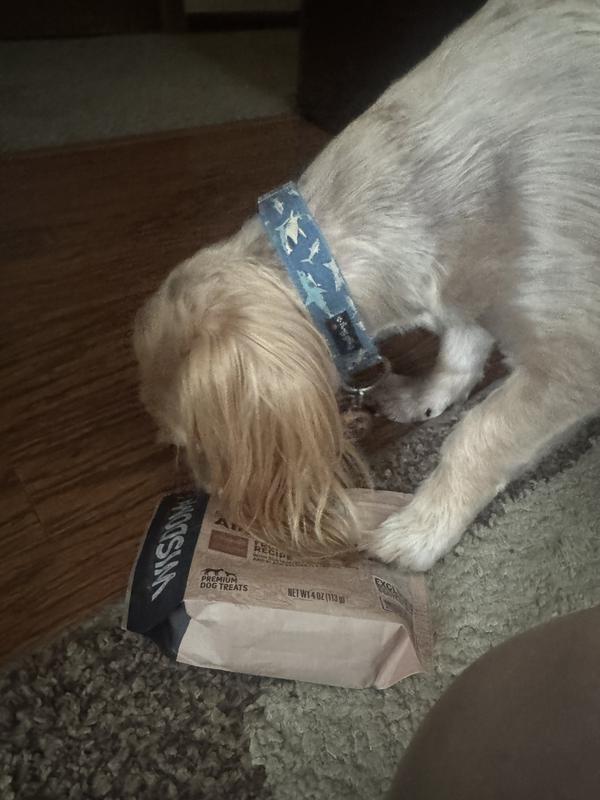 Unfortunately our family of Great Danes did not find these treats to be amazing. Two of our three dogs would eat them quickly, while the third would let it drop