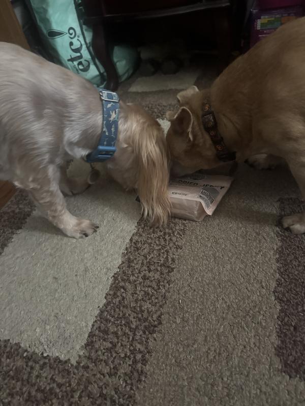 I have two dogs. The one who will eat just about anything was a little hesitant but eventually ate the Wisdon Air-Dried From The Soil Jerky treat. My picky eater
