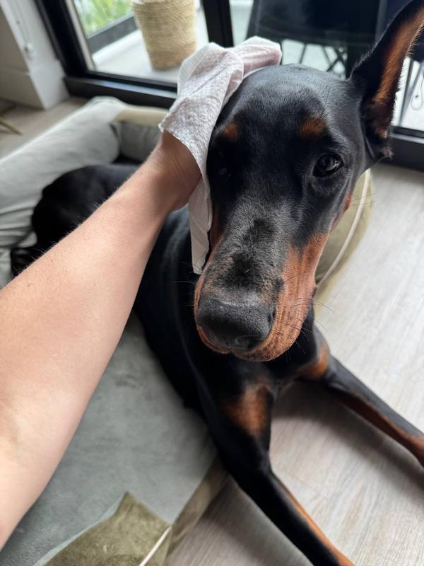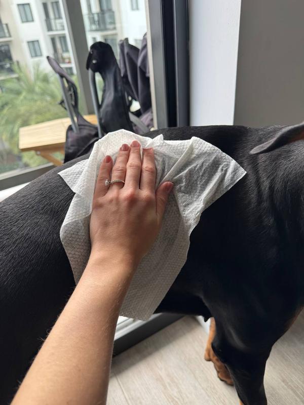 I have a Doberman, and these wipes have become a regular part of our grooming routine. I use them to freshen up her coat between baths and to wipe her paws and belly