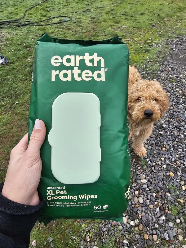 Earth Rated 3-in-1 Hypoallergenic Cleaning, Deodorizing & Conditioning Unscented Dog & Cat Grooming Wipes, Green, X-Large: 11 x 12-in, 60 count