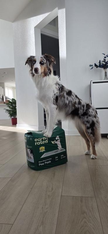 Earth Rated Pee Pads absorb 2X faster and 2X more*. No layering needed and fewer pads used for a cleaner home and a happier pup.