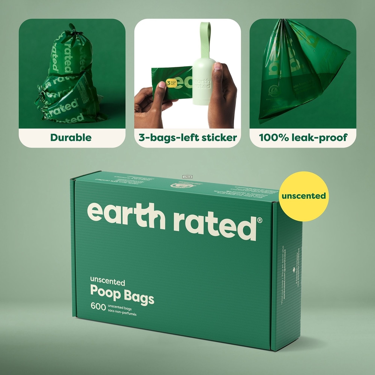 Earth Rated Dog Poop Bags, Refill Rolls, Unscented, 600 count