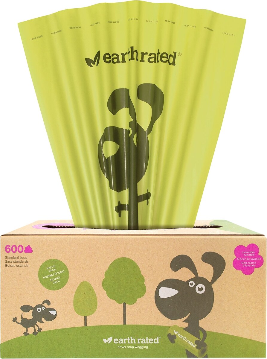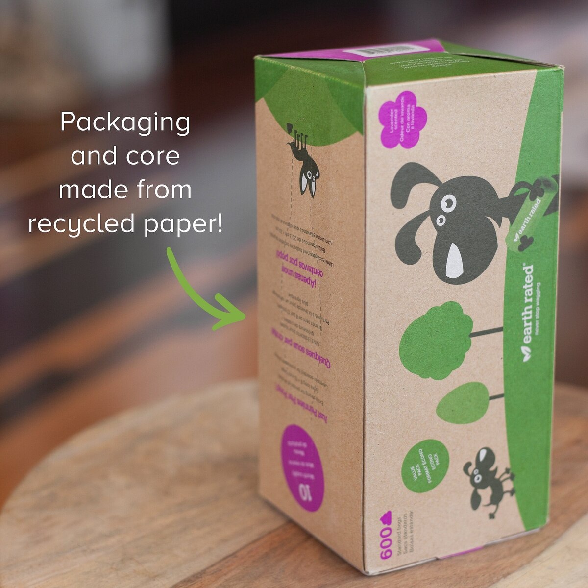 Earth Rated Dog Poop Bags, Thick Grab & Go Single Roll, Lavender Scented, 600 Bags
