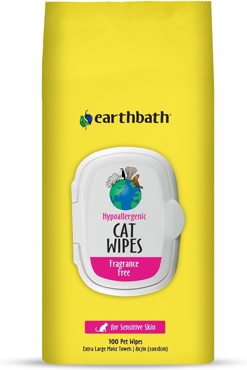 Earthbath Hypo-Allergenic Fragrance Free Cat Grooming Wipes, 100 count